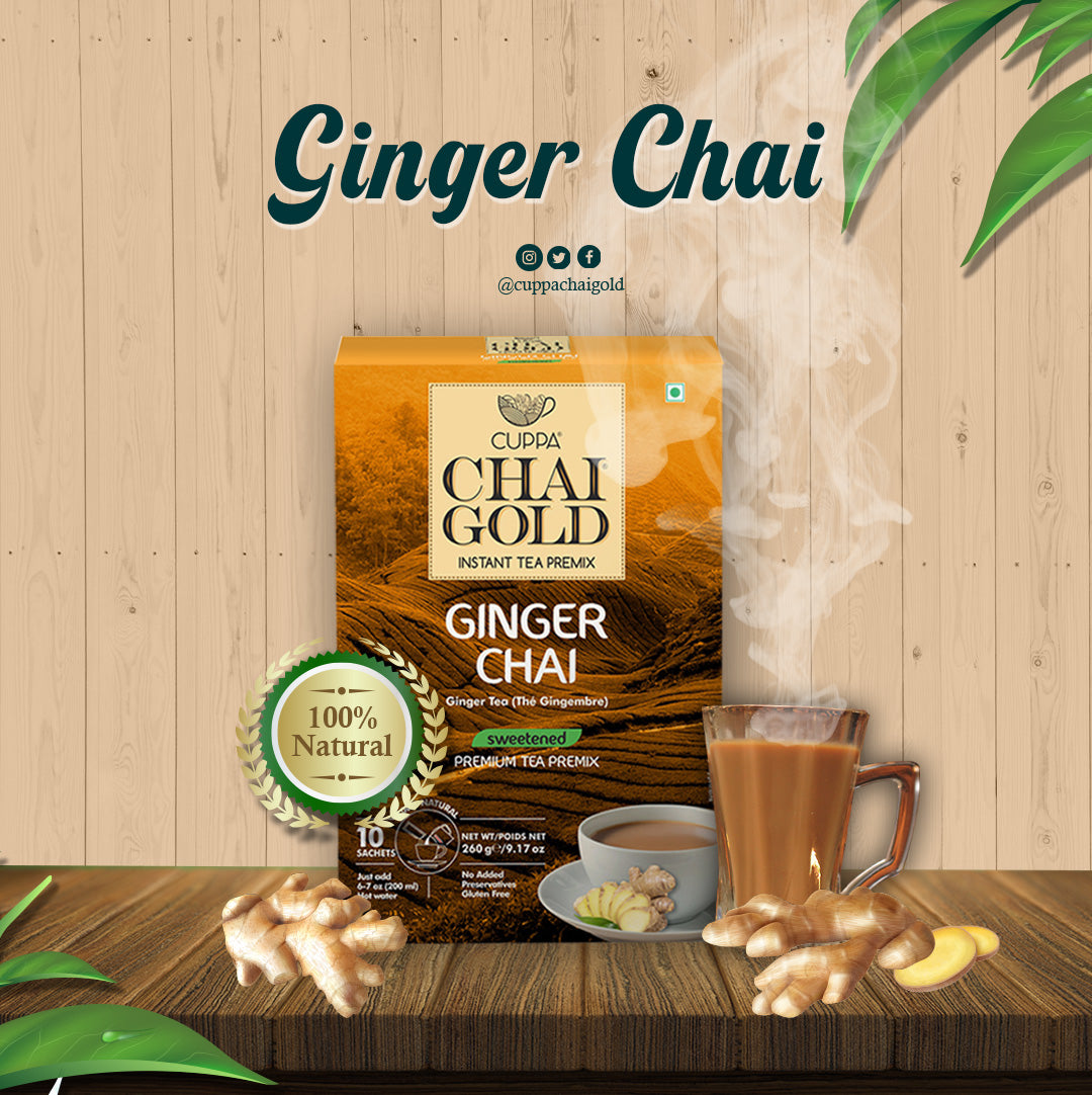 Enjoy a refreshing cup of traditional Indian chai with Chai Gold's all natural instant DAIRY FREE Ginger Sweetened. At Cuppa Chai Gold, we focus on quality, consistency, and convenience of our products. Relish your next cup of tea at home, office or while on the go!