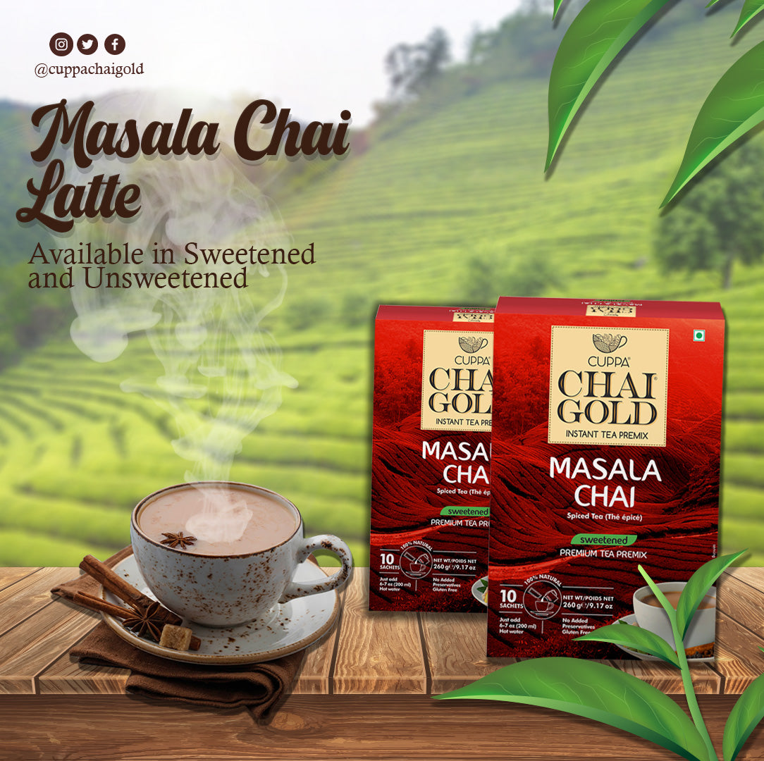 Enjoy a refreshing cup of traditional Indian chai with Chai Gold's all natural instant Masala Tea Unsweetened. At Cuppa Chai Gold, we focus on quality, consistency, and convenience of our products. Relish your next cup of tea at home, office or while on the go!